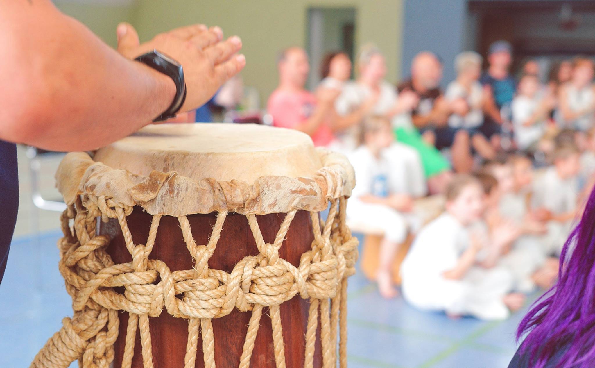 Die musikalischen Grundlagen werden in separaten Musiktrainings vermittelt, die in den regulären Trainingsalltag integriert sind. In unserer Gruppe besteht die musikalische Begleitung aus dem Zusammenspiel von drei Berimbaus (Musikbögen) – Gunga, Médio und Viola –, einer Atabaque (Trommel), zwei Pandeiros (Tamburine) und einem Agogô (Glockeninstrument). Alle weiteren Capoeiristas beteiligen sich durch rhythmisches Händeklatschen.