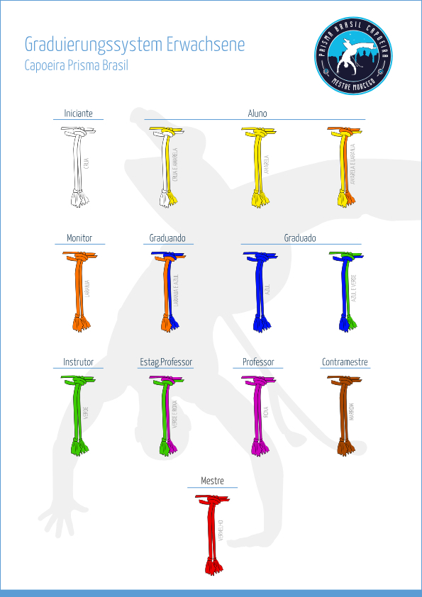 Viele Capoeira-Gruppen haben ihr eigenes Graduierungssystem, daher können Farben und der damit verbundene Schüler- oder Trainergrad stark variieren.